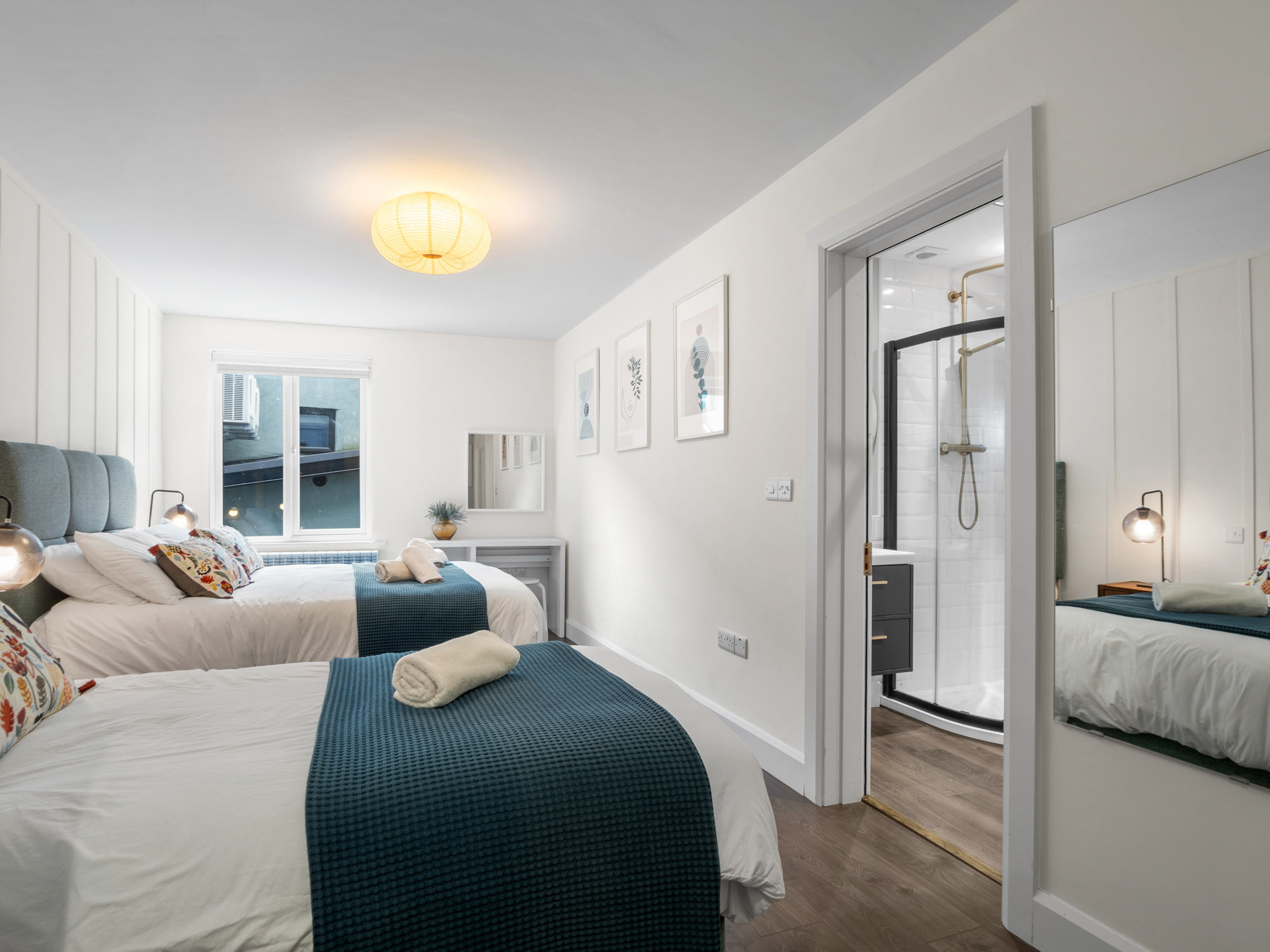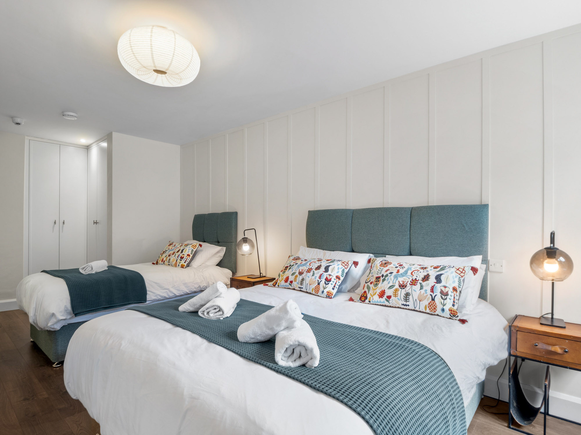 - Bedroom 1: Super king-size bedroom with additional single bed, en-suite, sleeping 3