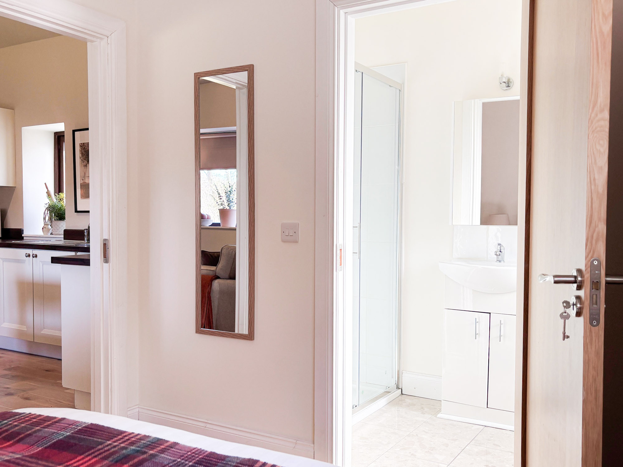 - En-suite bathroom with WC, hand basin and shower