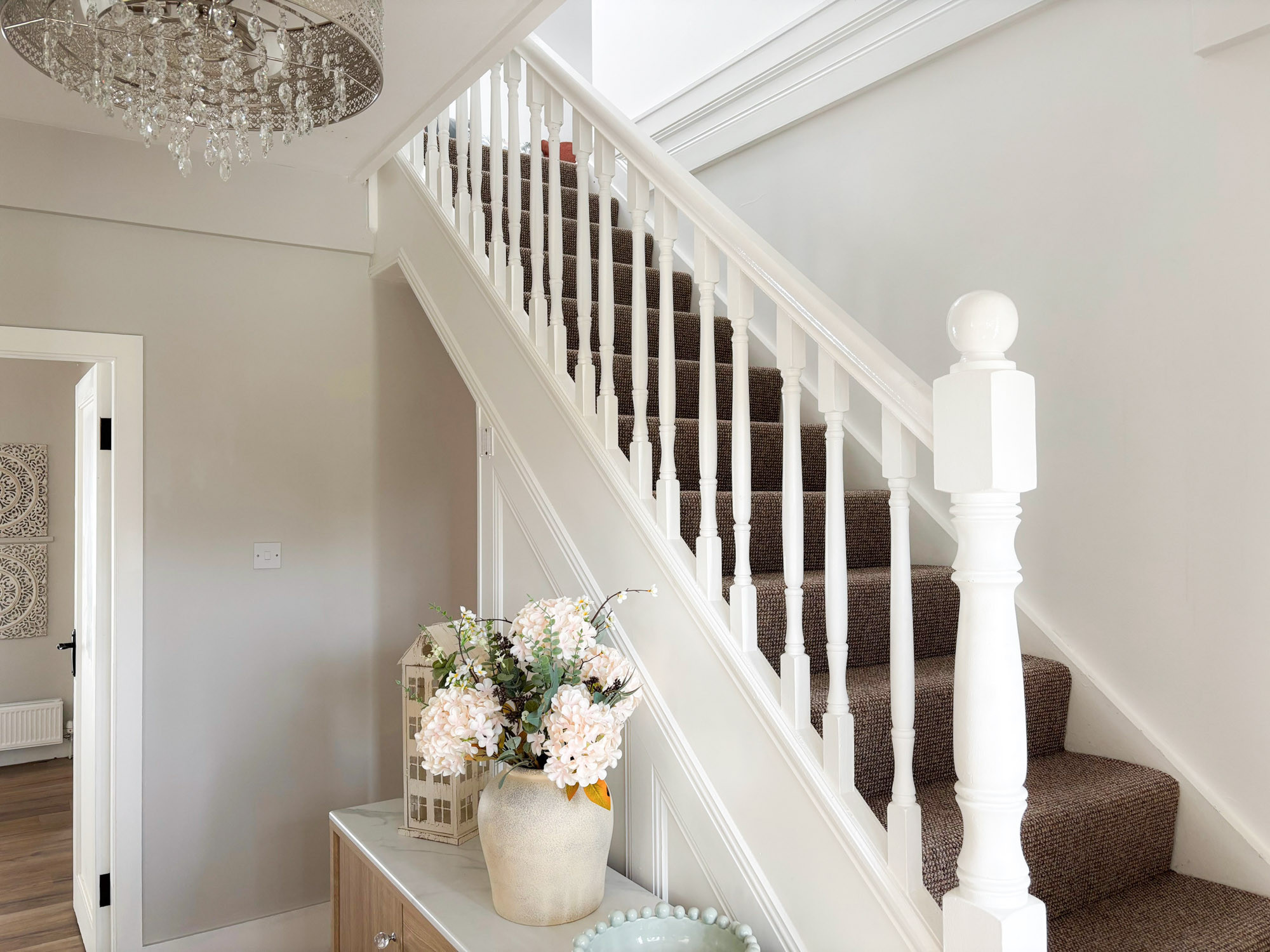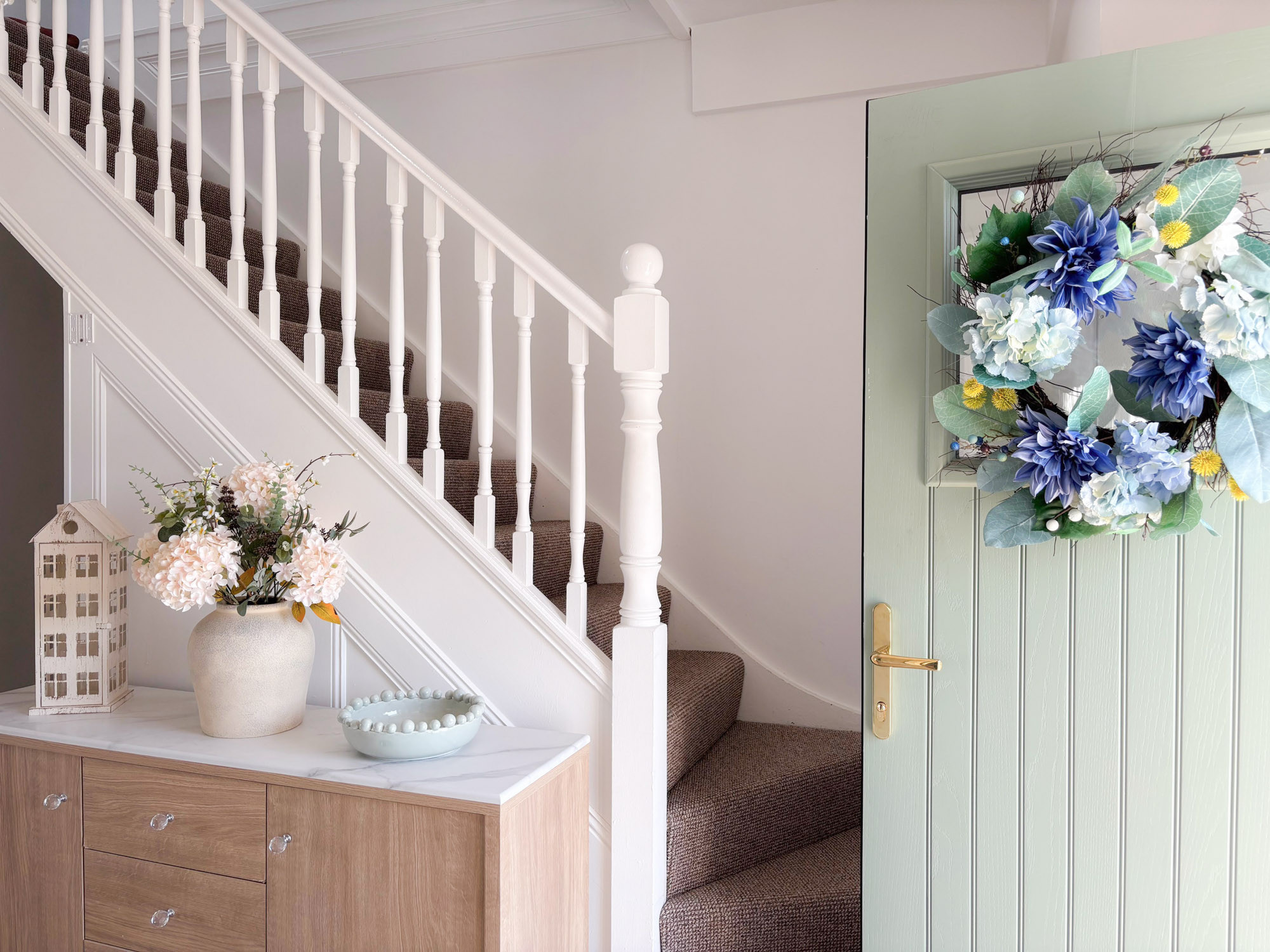 Washing machine & dryer are located beneath the stairs and accessible from the hallway.