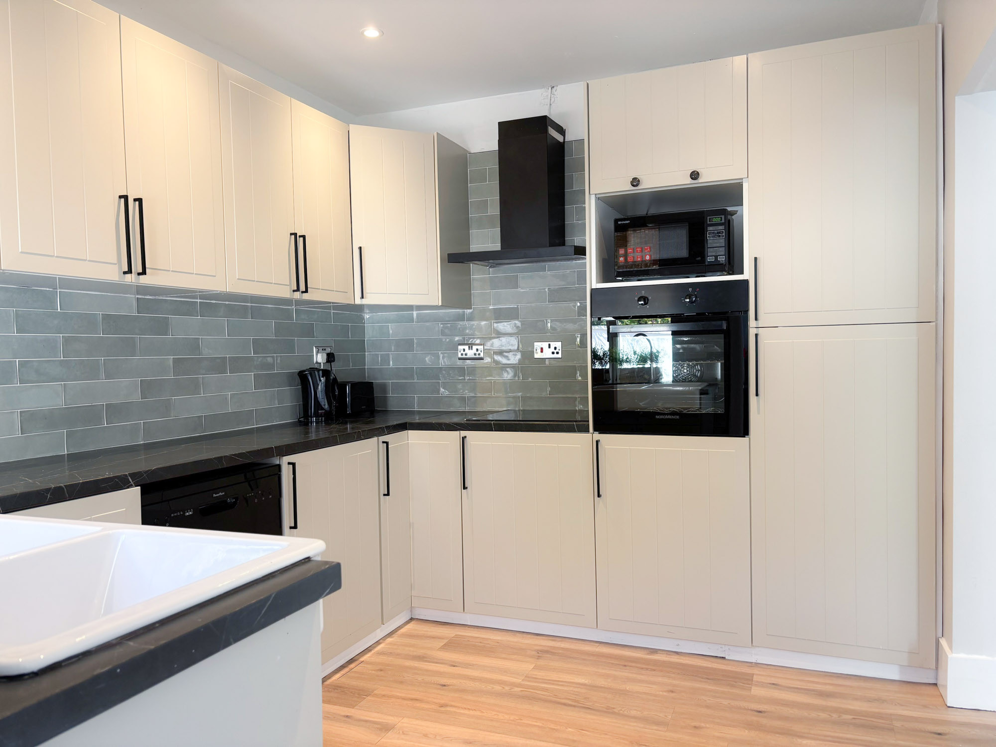 - Fully fitted kitchen with dishwasher, cooker, oven, microwave, kettle and toaster