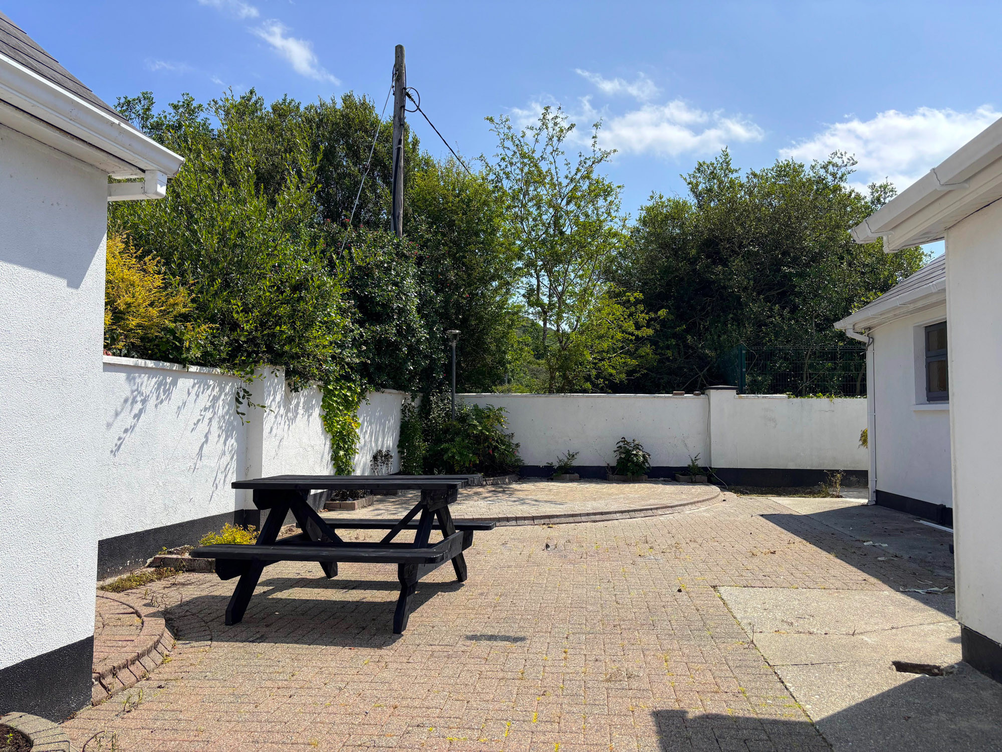 There is oil fired central heating downstairs and electric heating upstairs within the property. Patio is accessible from the kitchen and includes outdoor seating.