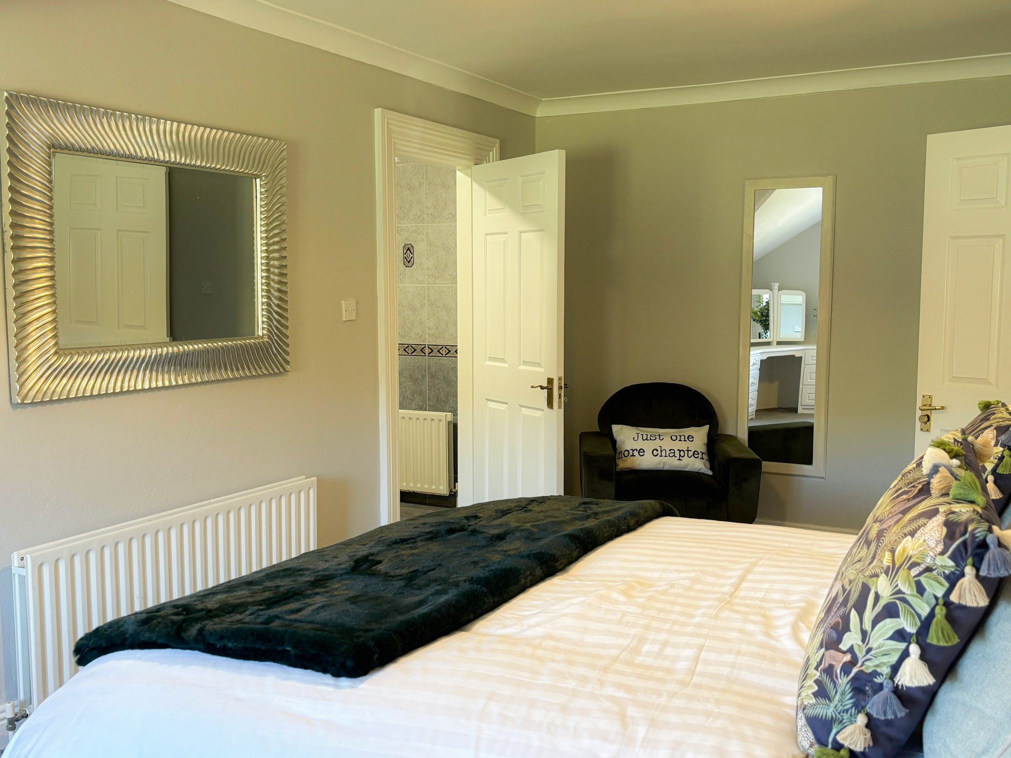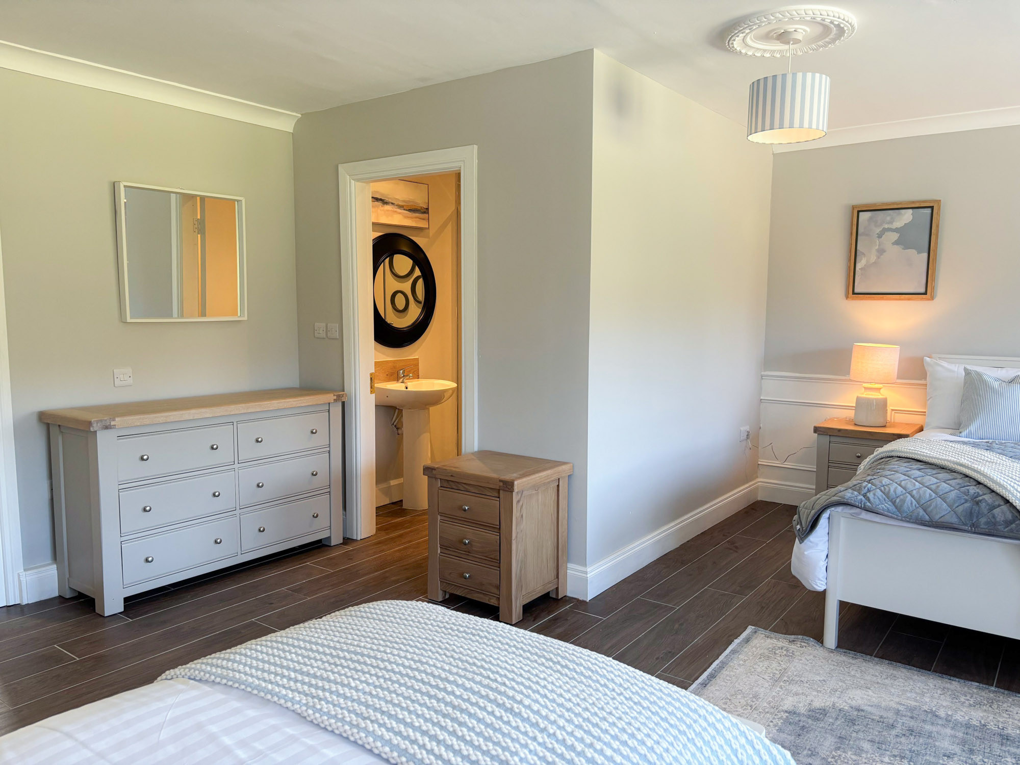 - Bedroom 4: King-size bedroom with en-suite (bath with overhead shower, WC and hand basin), sleeping 2
