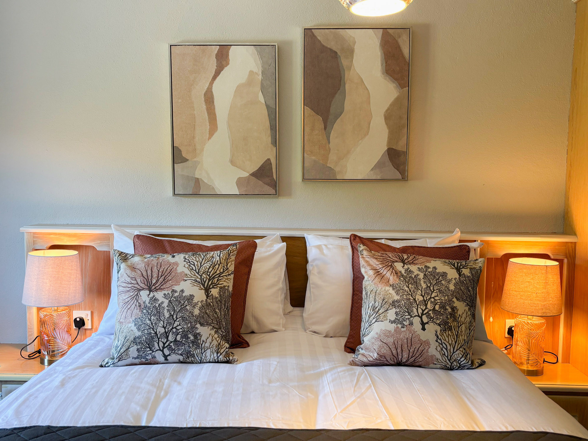 - Bedroom 10: King-size bedroom with en-suite (bath with overhead shower, WC and hand basin), sleeping 2