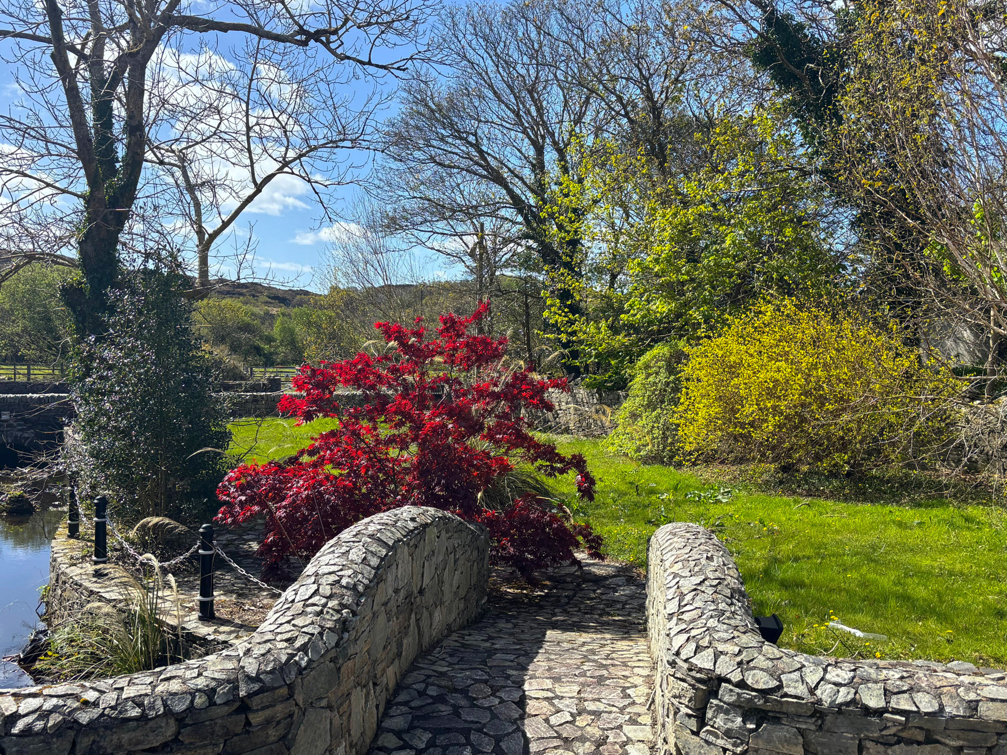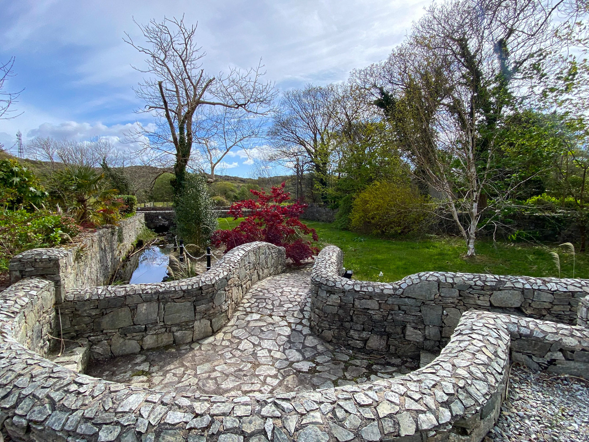 - Landscaped gardens with natural stream