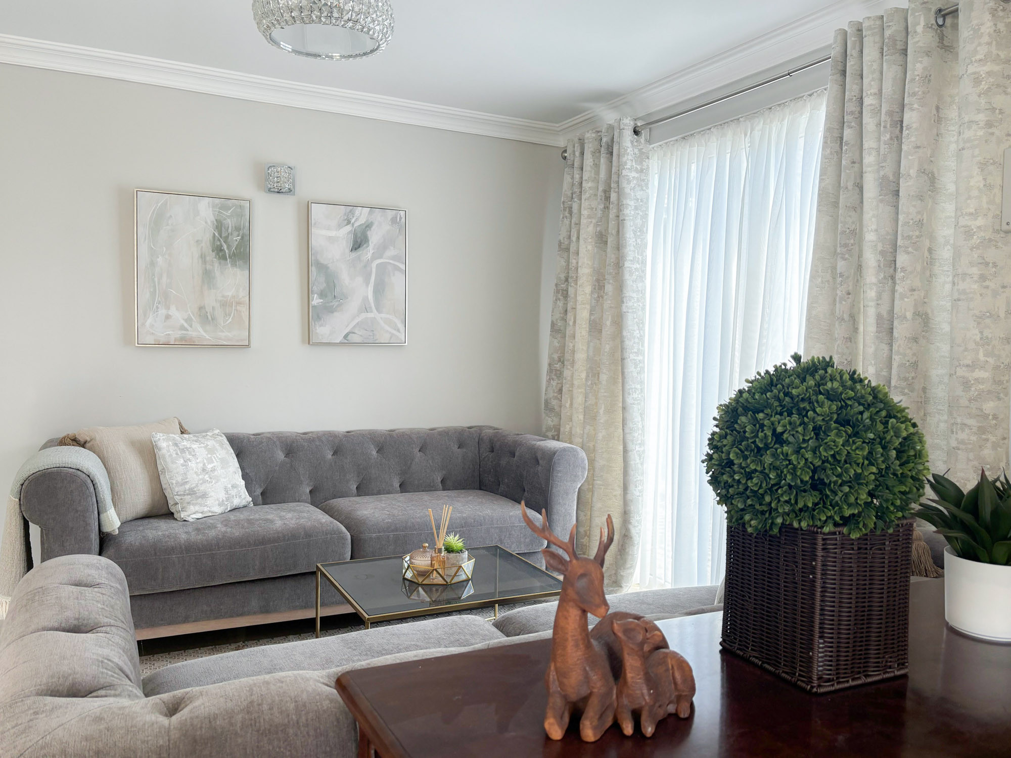 - Main living room with seating and large flat-screen TV