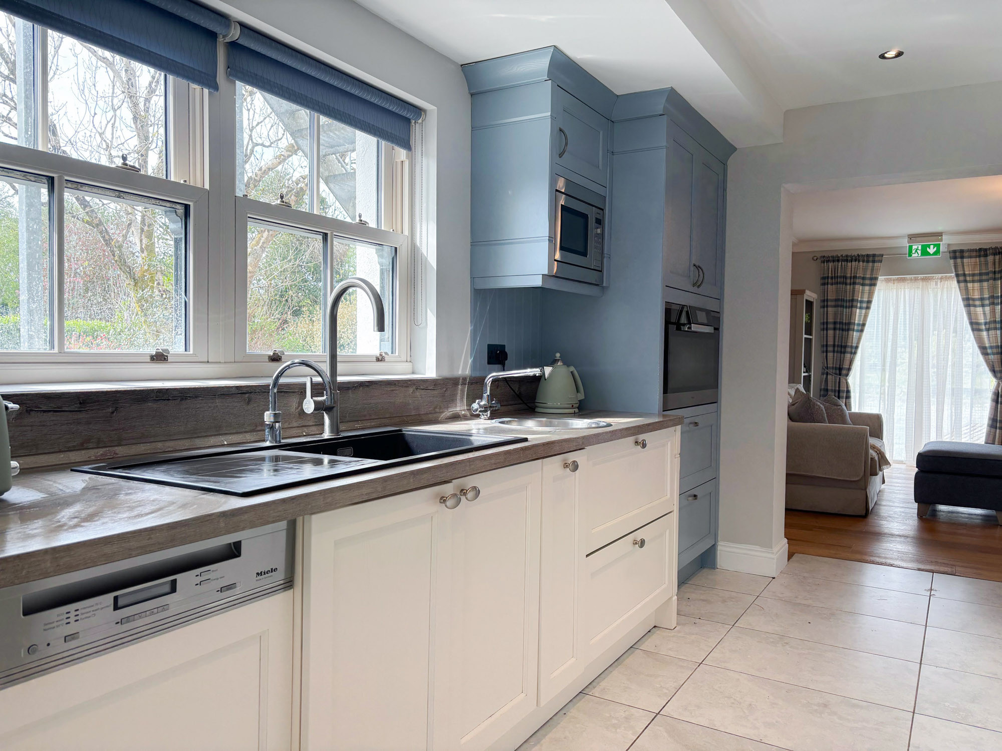 - Fully fitted kitchen with electric oven, hob, gas ring hob, microwave, dishwasher, fridge, kettle, toaster and coffee machine