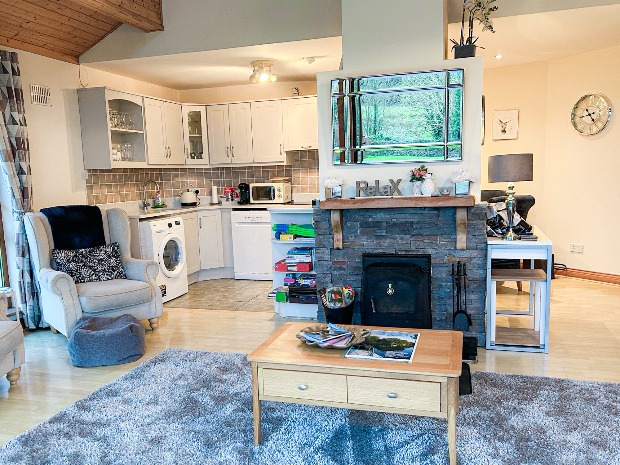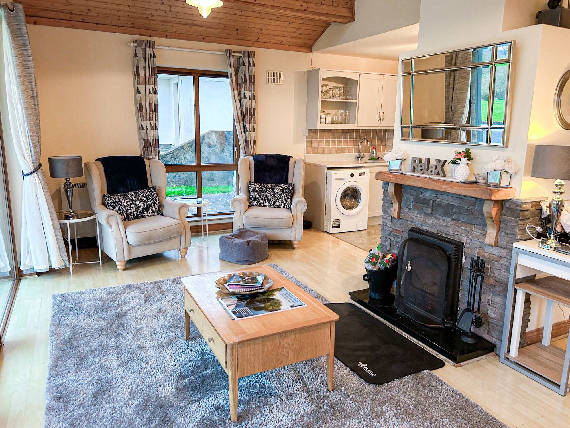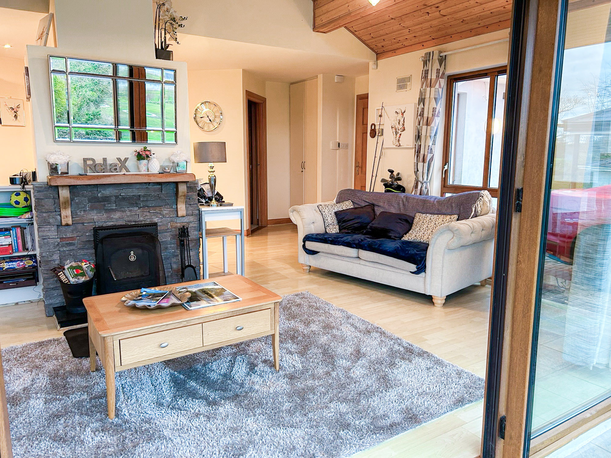 The holiday home enjoys lake views from the living area and patio, with access to local walking routes, golf courses, boating activities and lakeside amenities. Glasson village is nearby, with pubs, restaurants and a local shop, while Athlone town is approximately 6 km away.