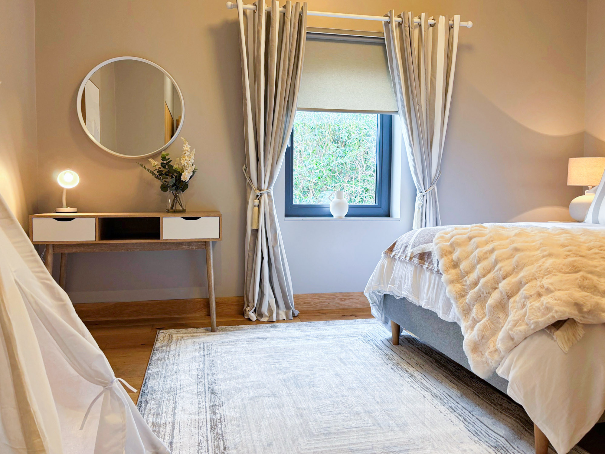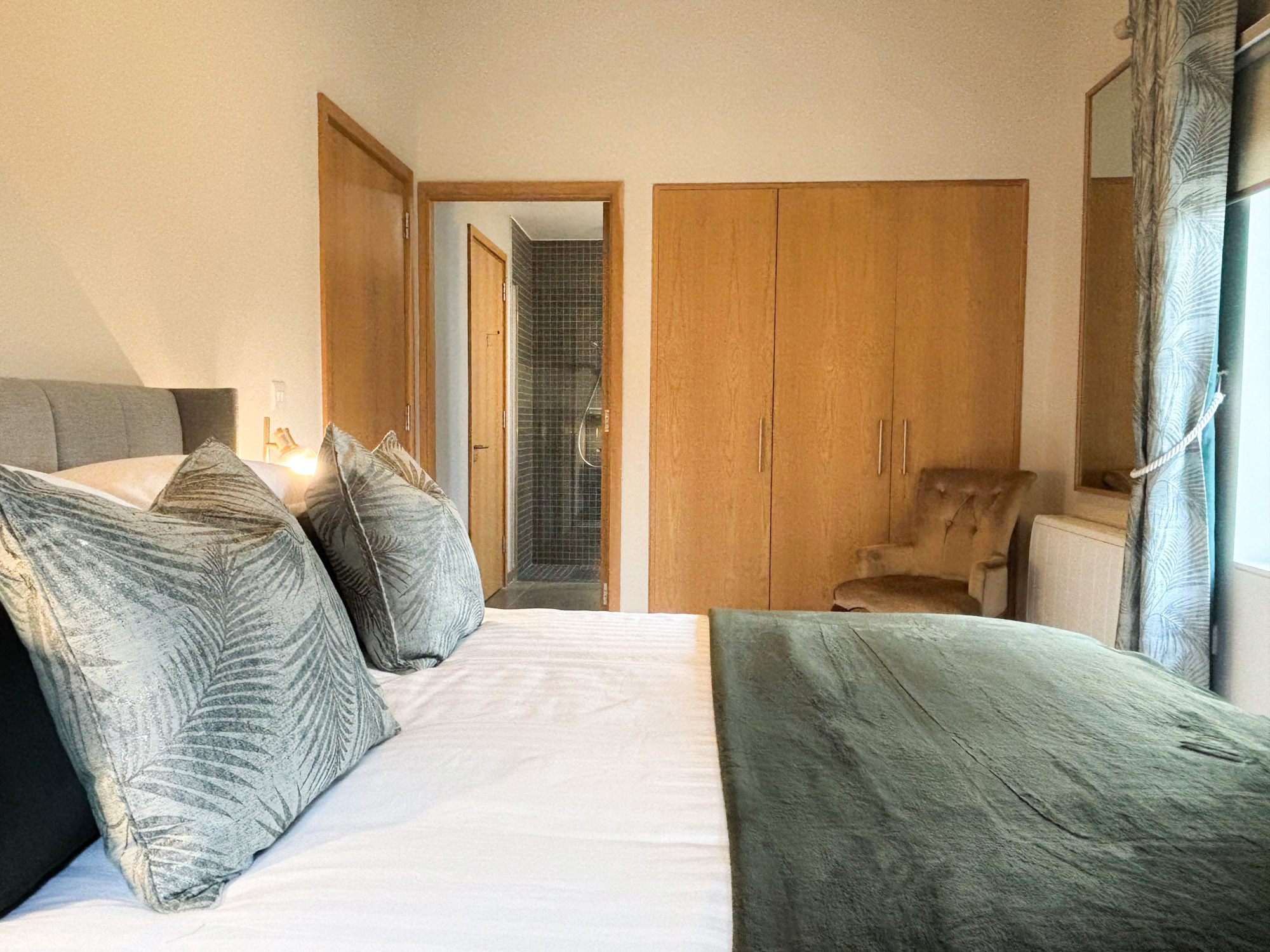 - Bedroom 2: Double bedroom with en-suite (wet room shower, WC and hand basin), sleeping 2