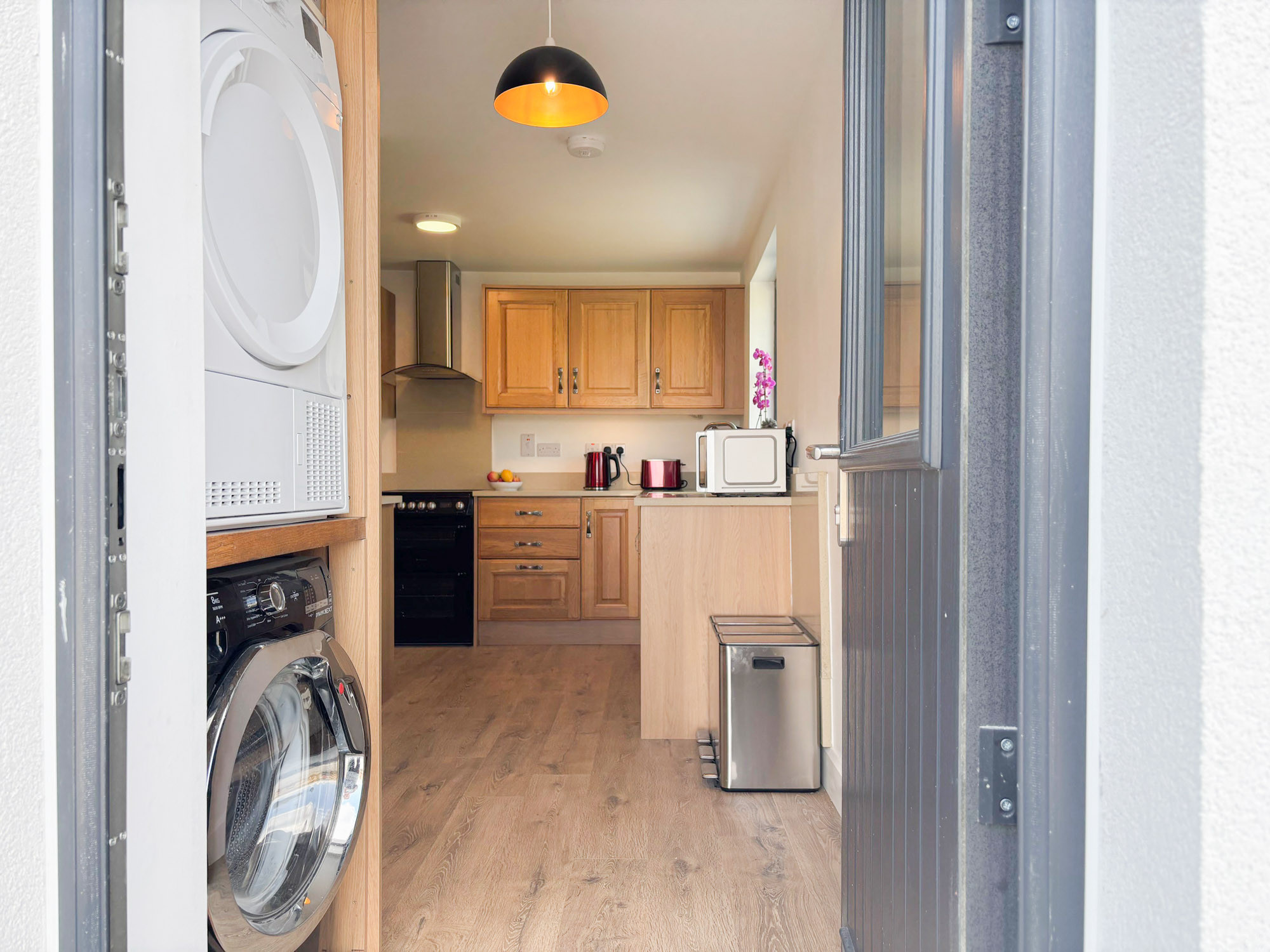 - Country-style kitchen with electric cooker, hob and grill, fridge freezer, dishwasher, microwave, kettle, toaster and coffee maker